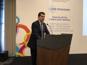 KOSGEB tarafından COSME programı kapsamında “COSME Programına Katılım ve Programdan Elde Edilen Kazanımları En Üst Seviyeye Çıkarabilme için Koordinasyon Kapasitesinin Arttırılması Projesi” yürütülmektedir. Proje kapsamında 3 Nisan 2018 tarihinde Ankara’da Kümelenme Tematik Eğitimi gerçekleştirilmiştir.